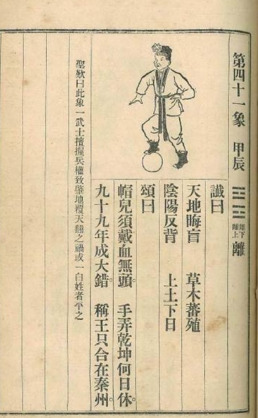 此象一武士握兵权,致肇地覆天翻之祸,或一白姓者平之。